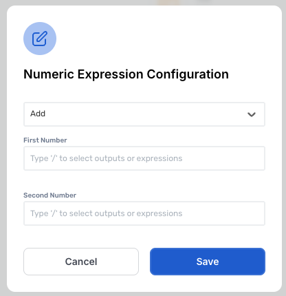 The expression will combine both of the inputted values from the First Number and Second Number together. If both number values are numbers the expression returns the Sum of both numbers.